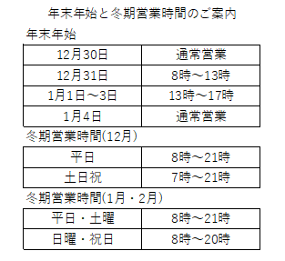 年末年始は営業時間が変更となりますのでご注意ください - 2025/12/25 (木)